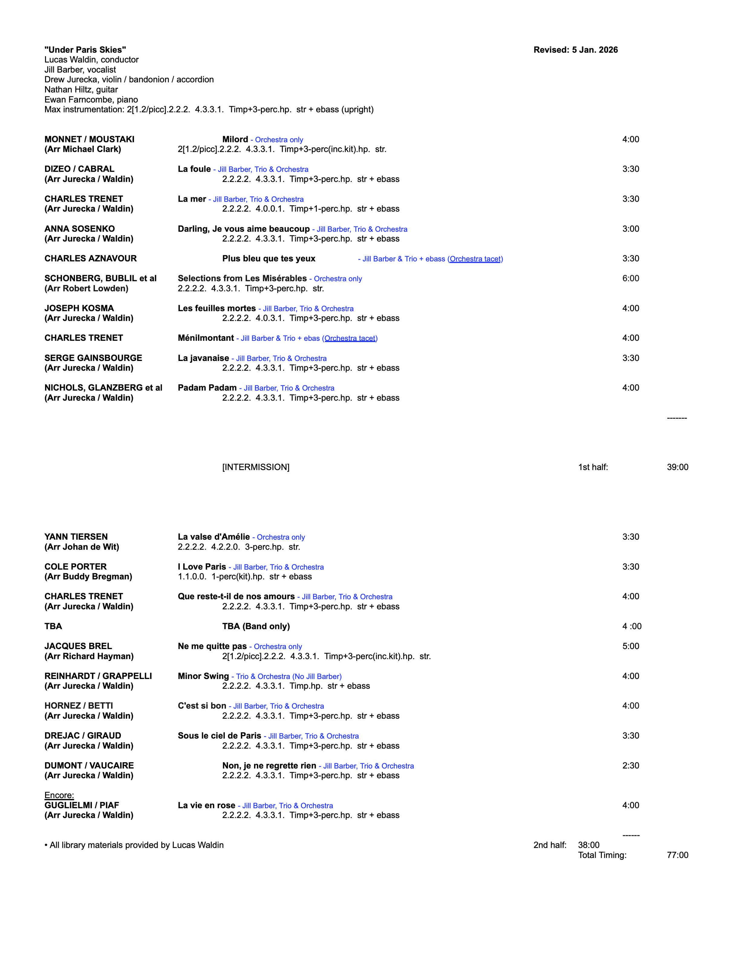 "Under Paris Skies is an elegant musical sojourn through the City of Light. A self-professed Francophile, Jill Barber—together with her trio—offers a heartfelt love letter to Paris, delivered in her unmistakable voice with grace, reverence, and deep appreciation. The deft orchestration serves as a worthy symphonic companion, enhancing the program while still allowing Jill and her trio to shine."